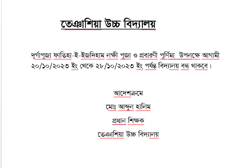 ঈদুল ফিতরের বন্ধের নোটিশ |